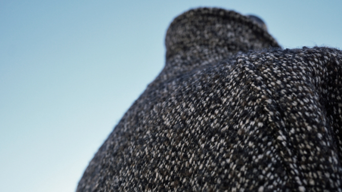 ‟めっちゃいい” 袖を通し、鏡の前に立った瞬間の心の内を、そこに映る自分の顔で再認識する。 着ているのはハズバンズのカーコート。 HUSBANDS C…