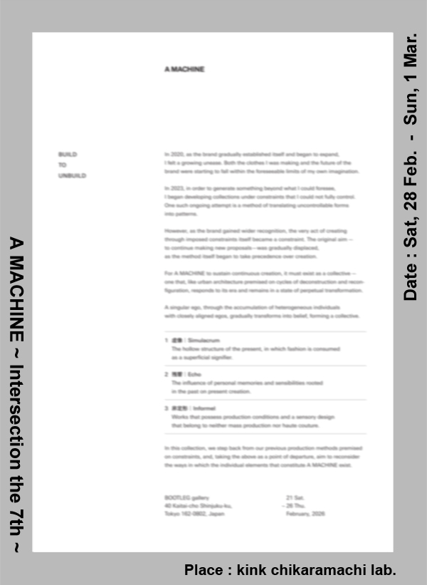 A MACHINE – INTERSECTION – place : kink chikaramachi lab. date : 2/28 sat. – 3…