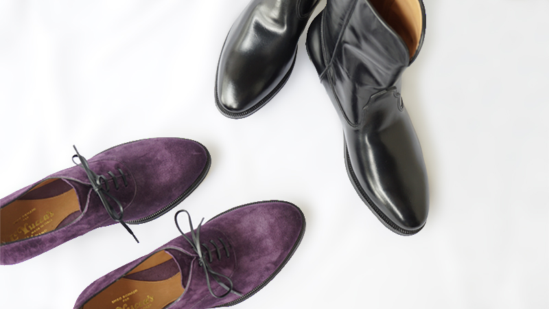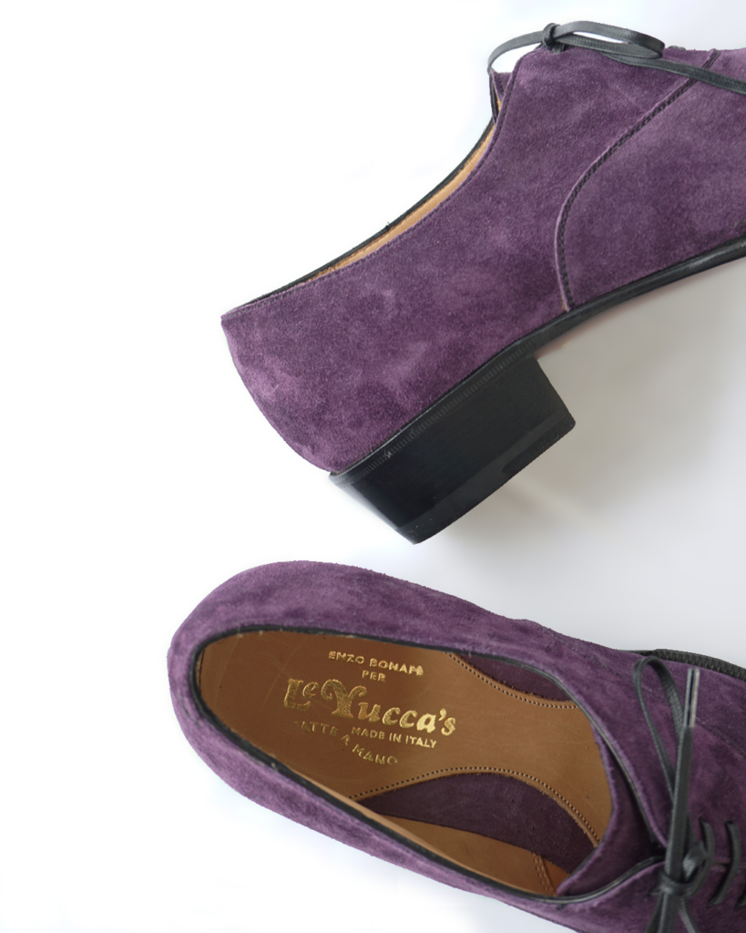 そして、アッパーには美しいイタリアのプラムパープルスエードを。