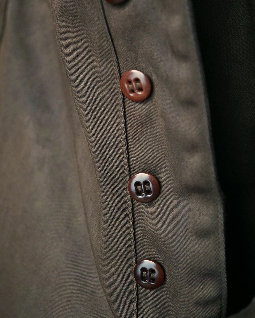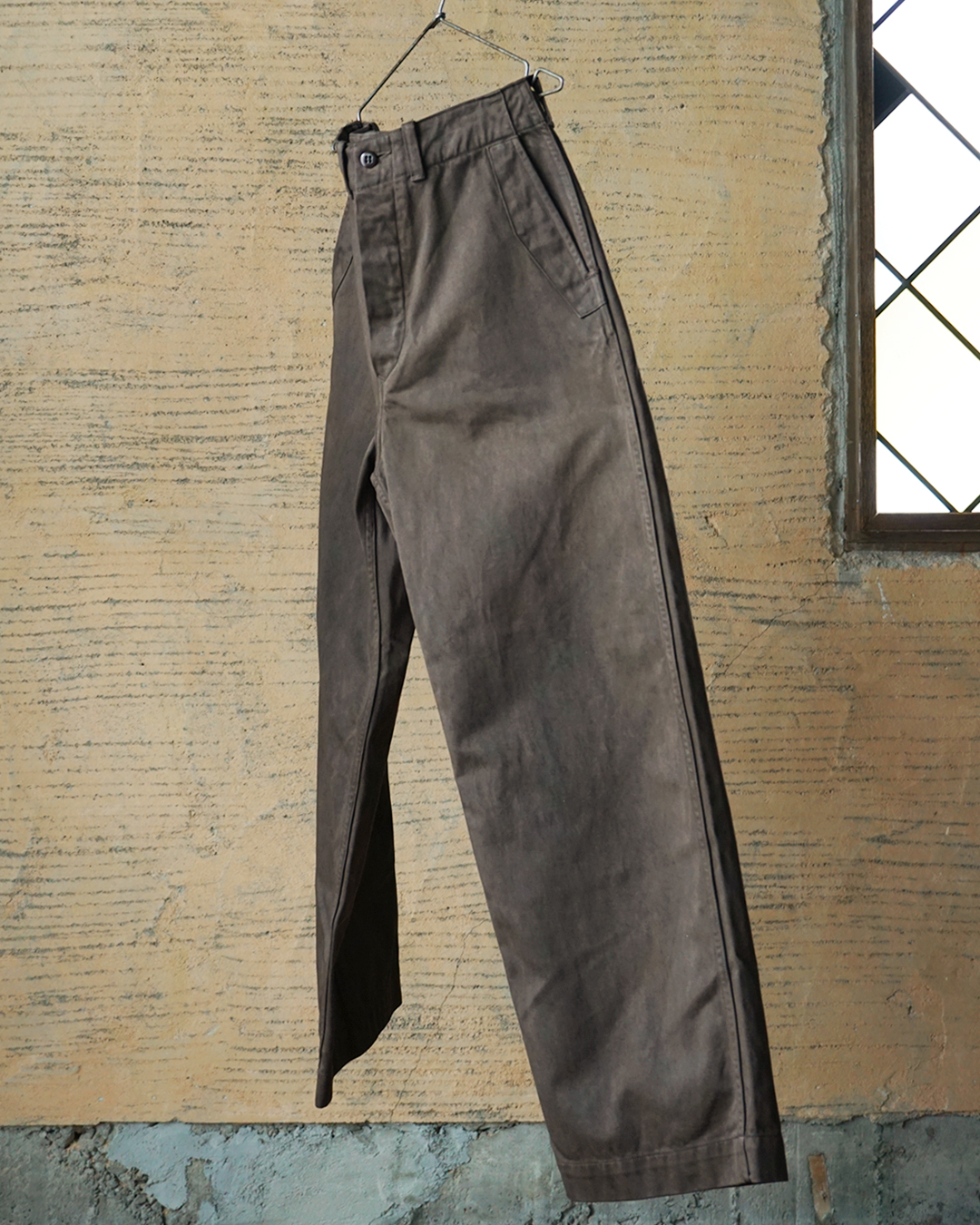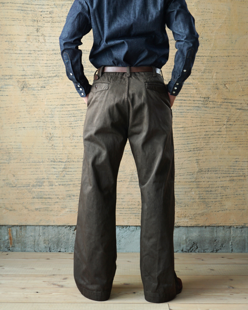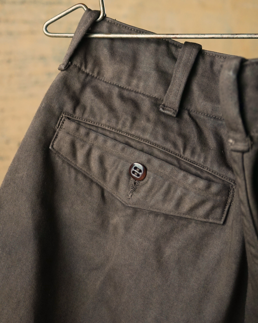 これは当時の生地には激しい労働に耐えられる強度がなく、ジーンズで言うところのリベットのような役割のためですが、このパンツにとっては静かな装飾のようにも映ります。