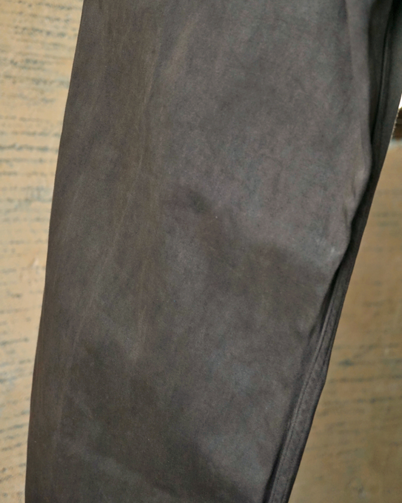 また、丈夫でありながら穿き込むほどに柔らかくなり、色や光沢の移ろいとともに味わいを増していくのもサテン生地の魅力です。