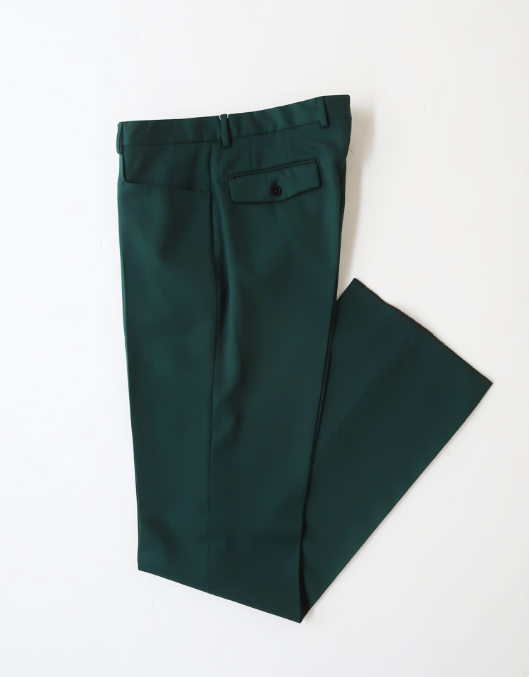 続いては、この洒落た深緑。トラッドでありながら遊び心のある色味のスラックスといえば、パリのあのブランドを思い浮かべます。とキトウに教えてもらいました。