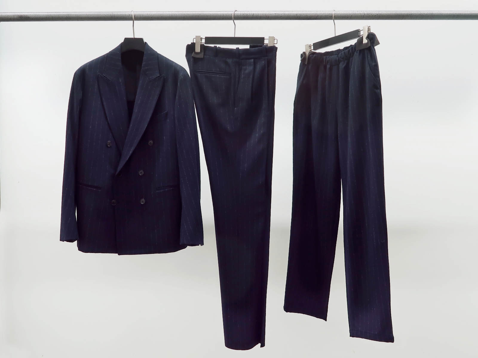 1つのジャケットに対して複数あるパンツということは、スーツとしての提案ではなくあくまでセットアップで着用できるということ。その良さをいかしたチョイスがこの3点なのでそれぞれのパンツを着用したスタイルを、そして単品でしっかりと主張があるのも特徴ですのでそのあたりもまとめてご紹介します。