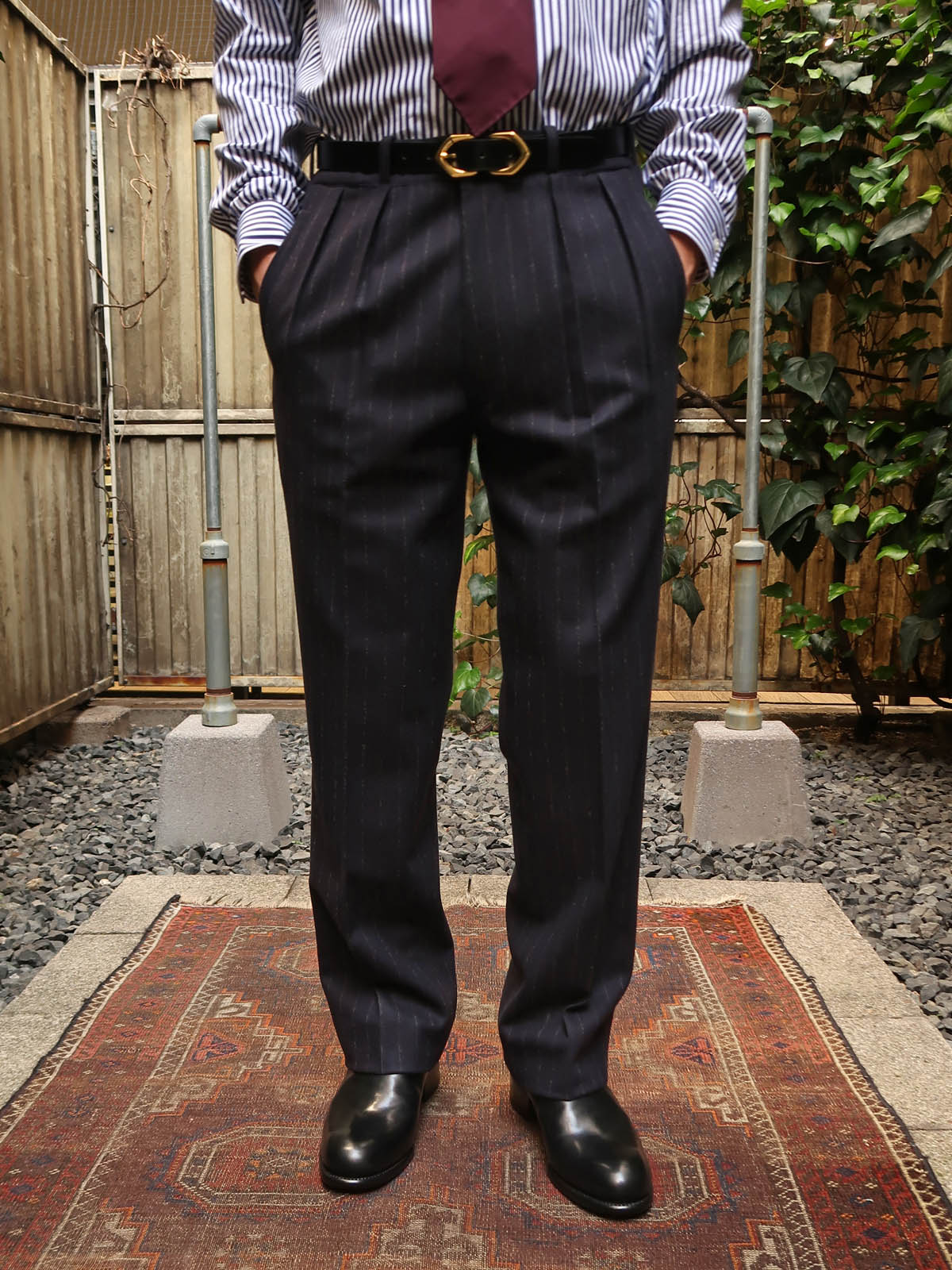 “FREDDIE” 2P STRAIGHT TROUSERS – Navy Wool Flannel Chalk Stripe