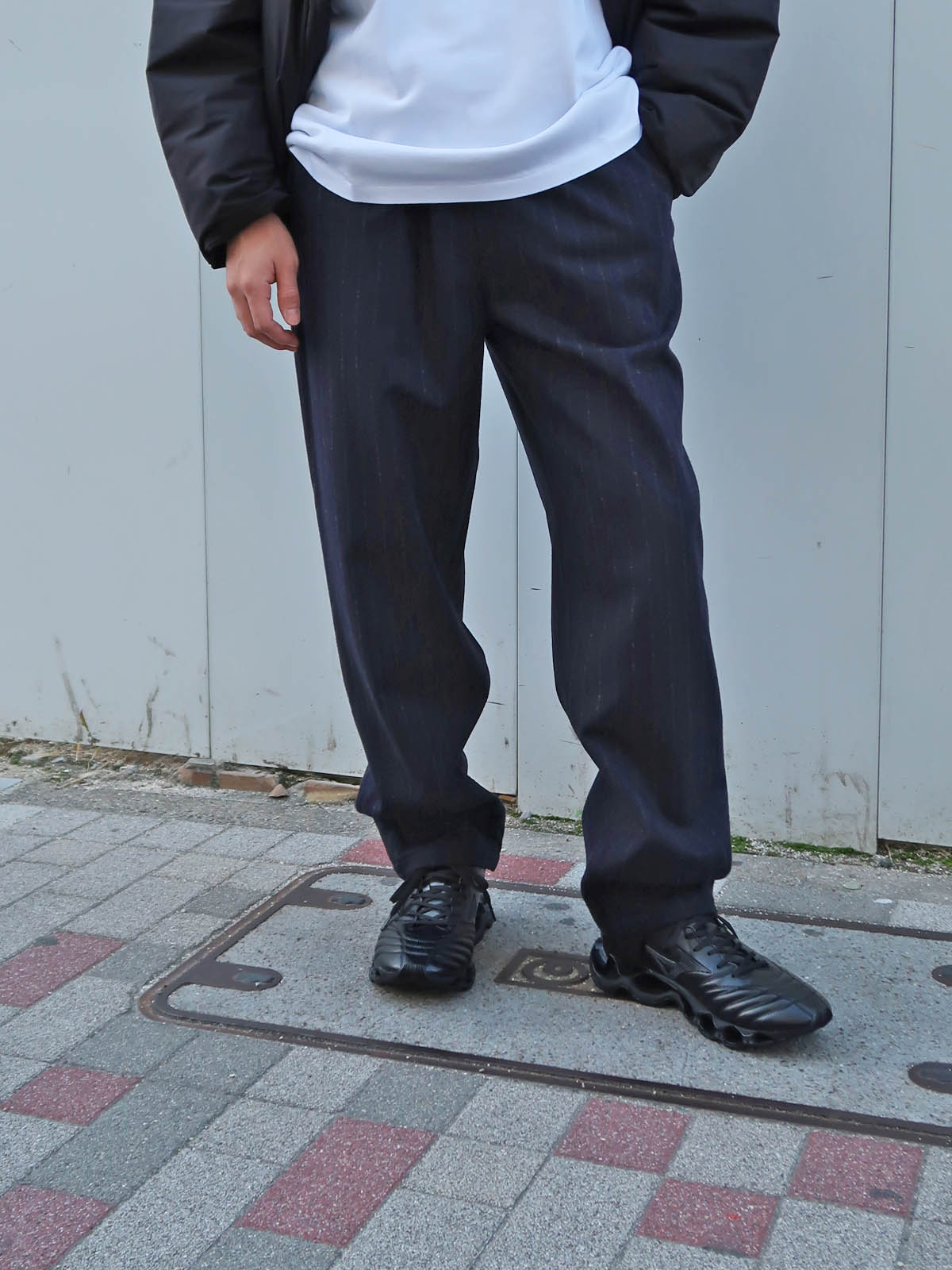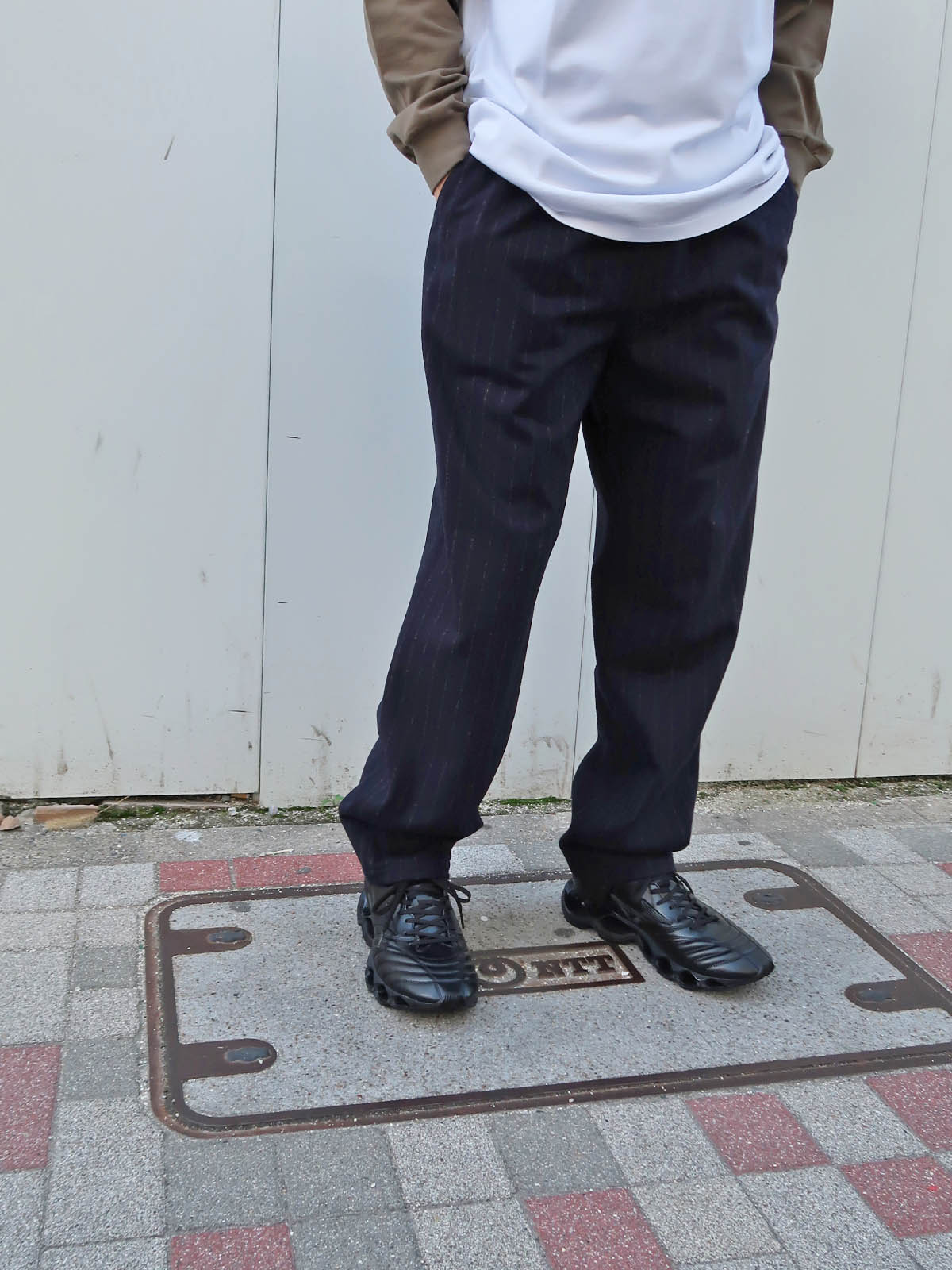 COOPERは単品で見るととてもカジュアル。スラックスを意識しながらもトレーニングパンツをベースにしたようなシルエットにも見え、裾幅もやや細めなのであえてためてはいたりボリュームのあるスニーカーを合わせたりすると一層カジュアルさを演出することができます。