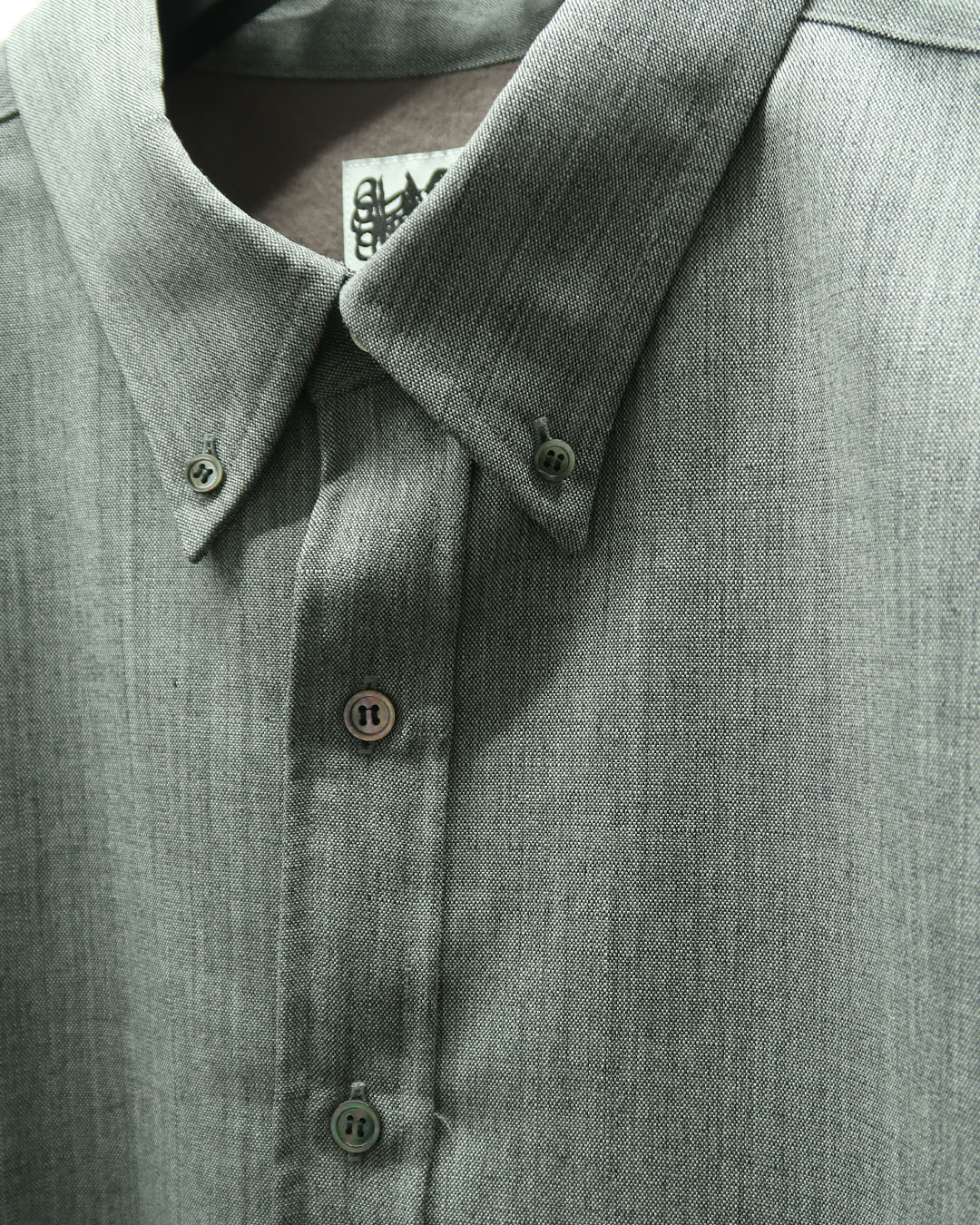 どちらも欧州の香りを感じる上品な生地で、それがアメリカントラッドを想起させるボタンダウンシャツのデザインに採用されていることも、このアイテムの魅力だと思います。