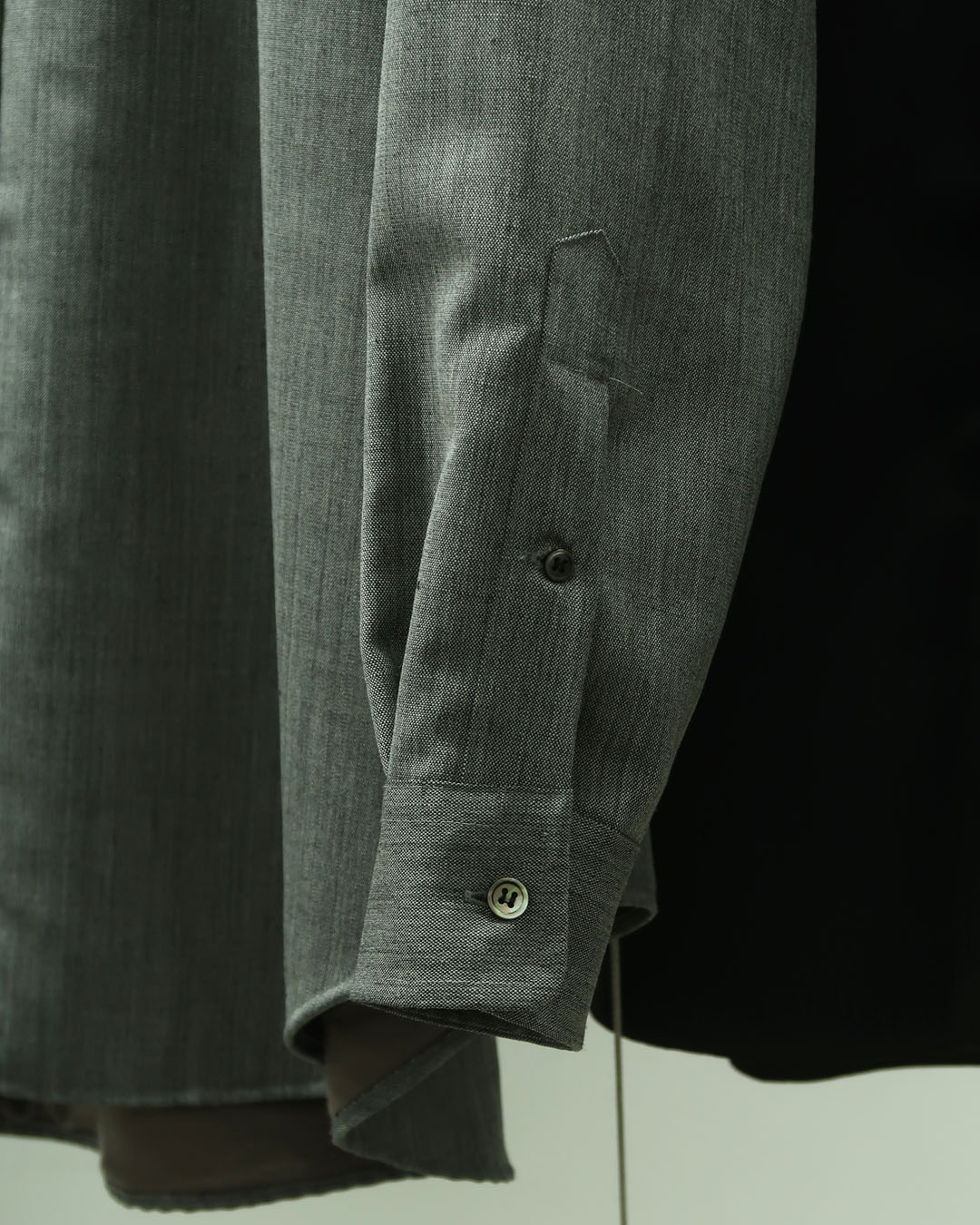 ビッグサイズのシャツというアイテムは、これまでも多くのブランドから提案されていました。それでも、このアイテムが特別に魅力的に感じられるのは、ラグジュアリーブランドでもデザイナーズブランドでもストリートブランドでもない、それでいて、どの要素も兼ね備えているように感じるCLASSの服だからかもしれません。