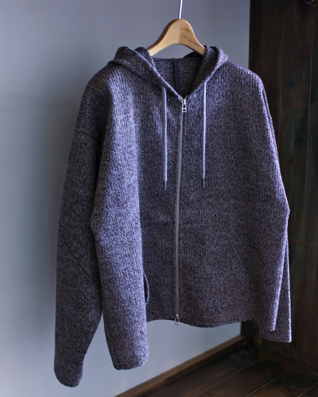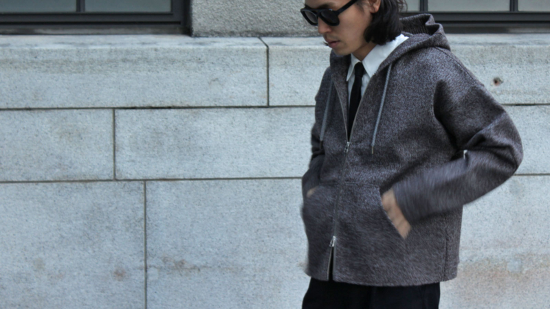 先に述べたように、ウールやアルパカといえば”柔らかい”や”フワフワ”するなど、AWアイテムですので防寒性や着用時の温もりを期待して手にしますが、このパーカーにその期待はしてはいけません、、、