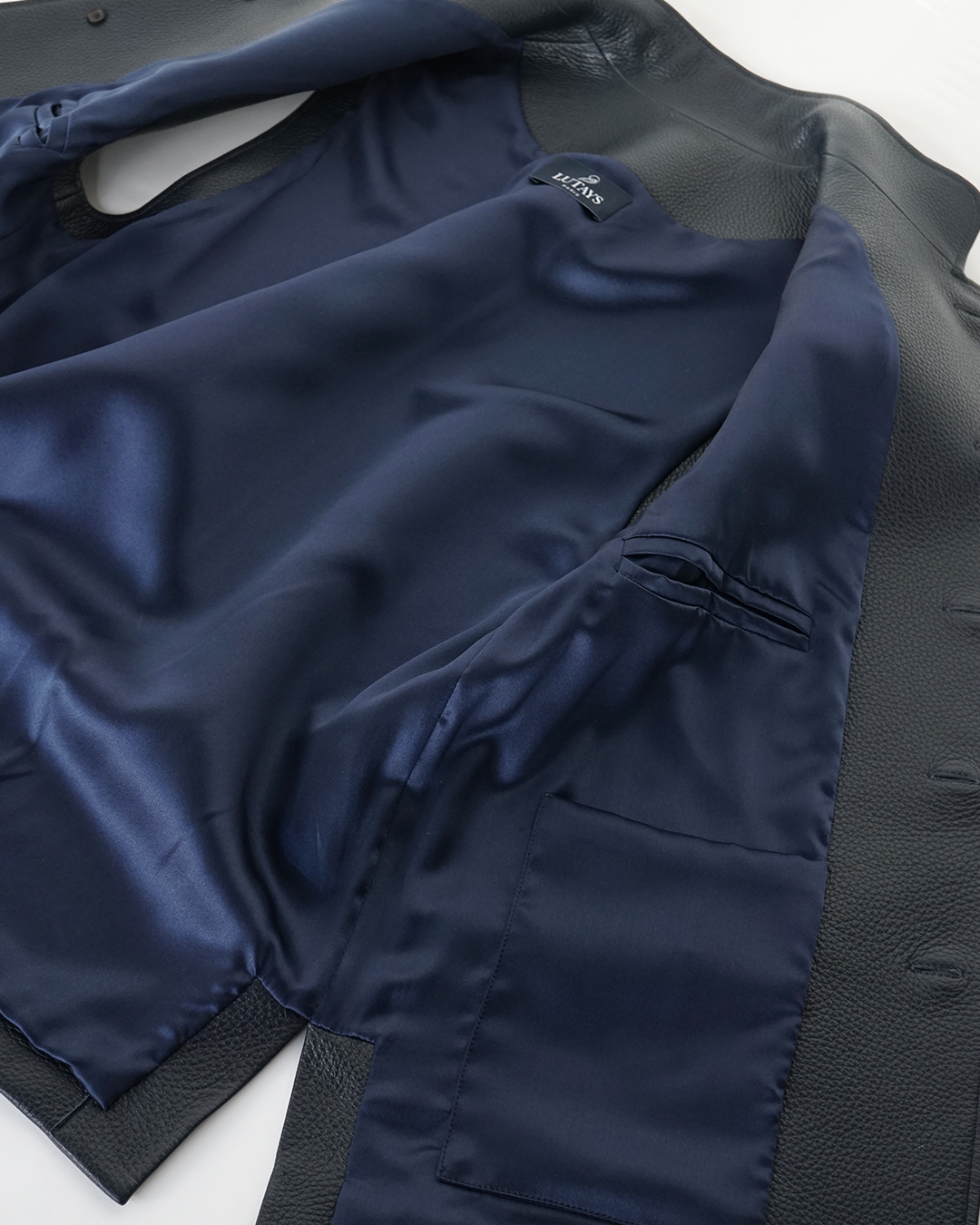 裏地には贅沢にも総シルクのライニングを配し、着用した瞬間から滑らかに身体を包み込みます。