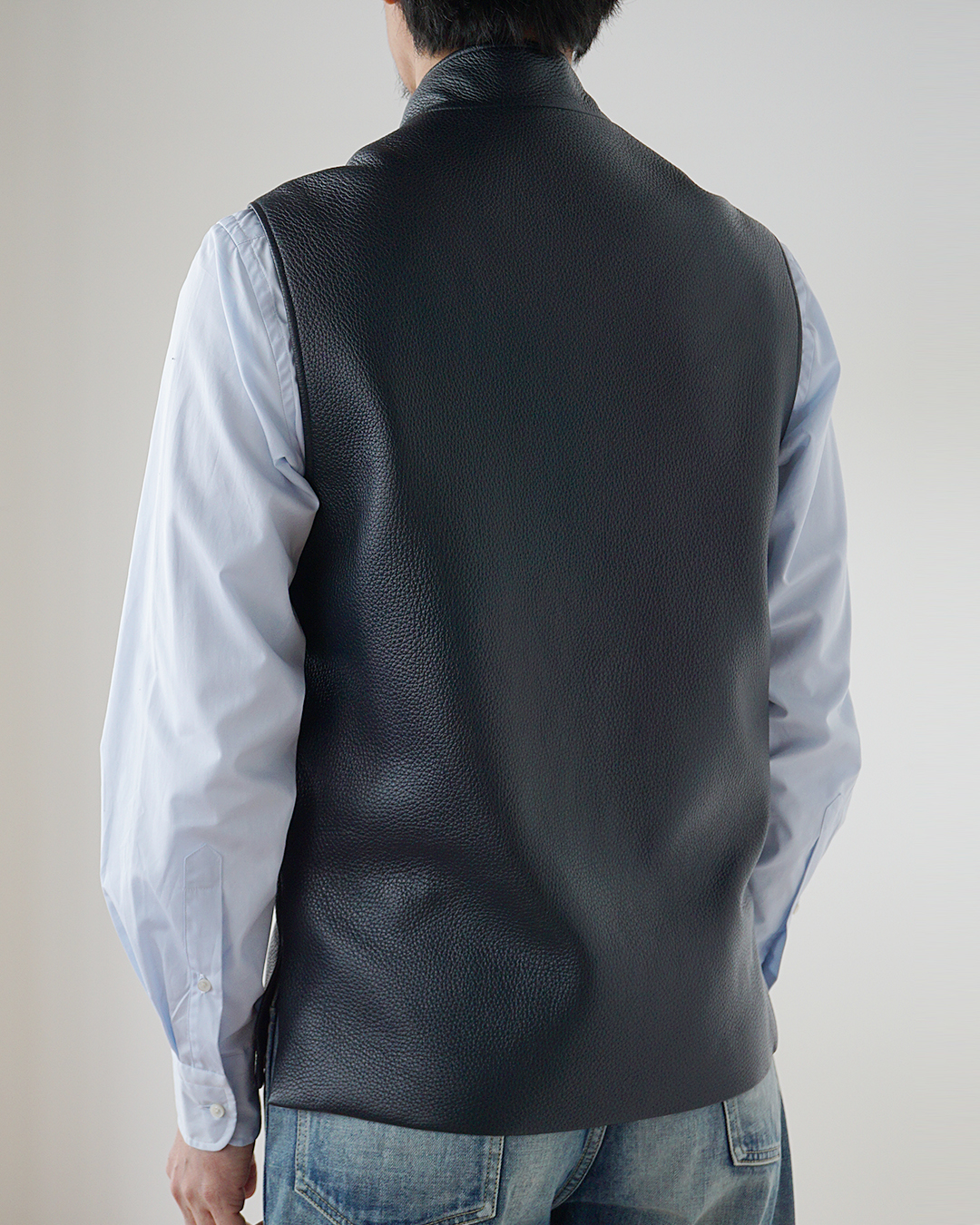 裁ちのない一枚革で仕立てられた後身頃には、伸びやかなフォルムが生まれます。