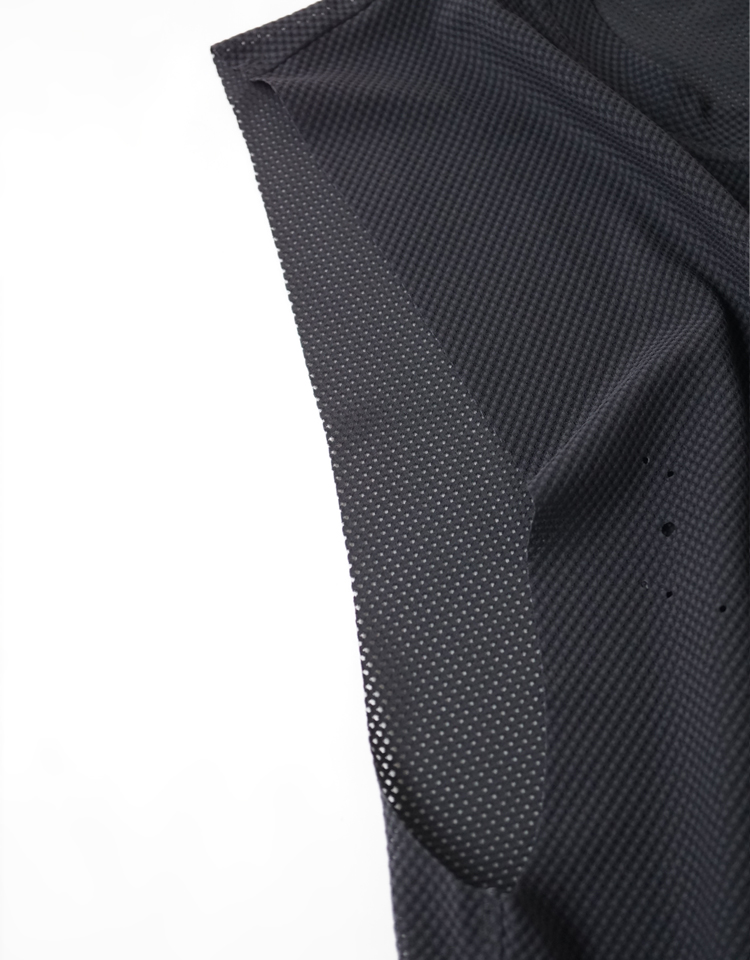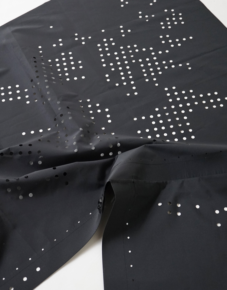モノマテリアルの合成繊維、レーザーカットのディテール、ノーヘム、ノージップ、革新的なマグネットクロージャーシステム。これらは、動きやすさ、適応性、そして長期的な耐久性を確保するだけではなく、縫製を減らし、分解や修理・リサイクルまで考慮されたアイデア。