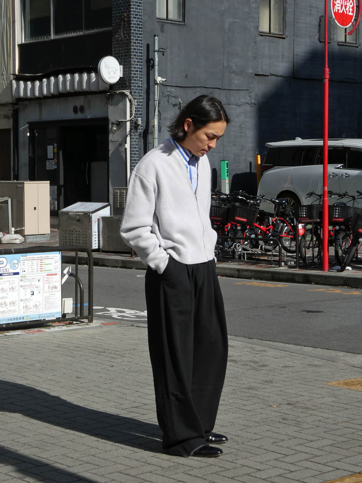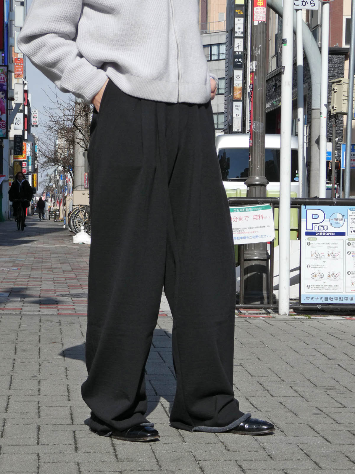 コットンウールの厚手のジャージー素材で仕立てた、トラウザーズパターンのトラックスーツ、”WIDE JERSEY COTTON TRACKSUIT”。
