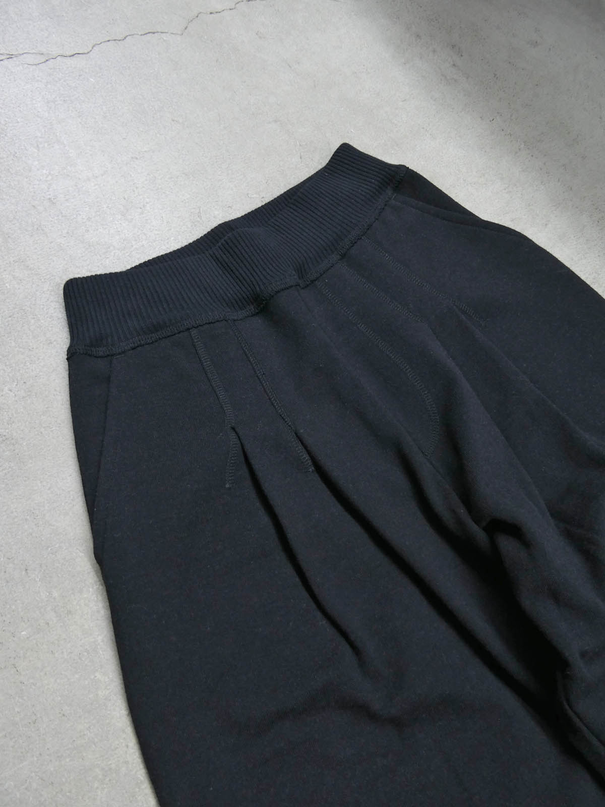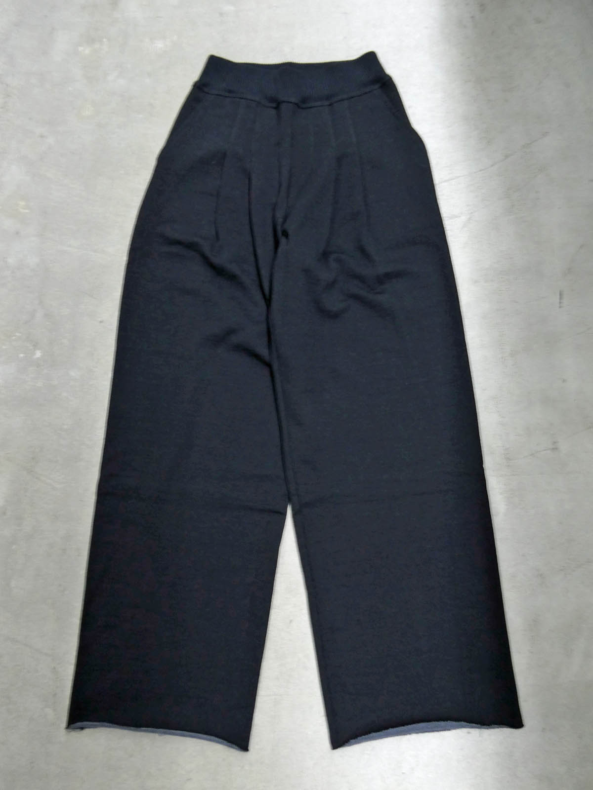 どんなウエストの方でも履いていただけるくらい締まりのいいウエストリブは太めに設計され、窮屈さを分散させる工夫も。長めの裾は切りっぱなし仕様の為、お好みの位置でカットして履いていただくことも可能です。