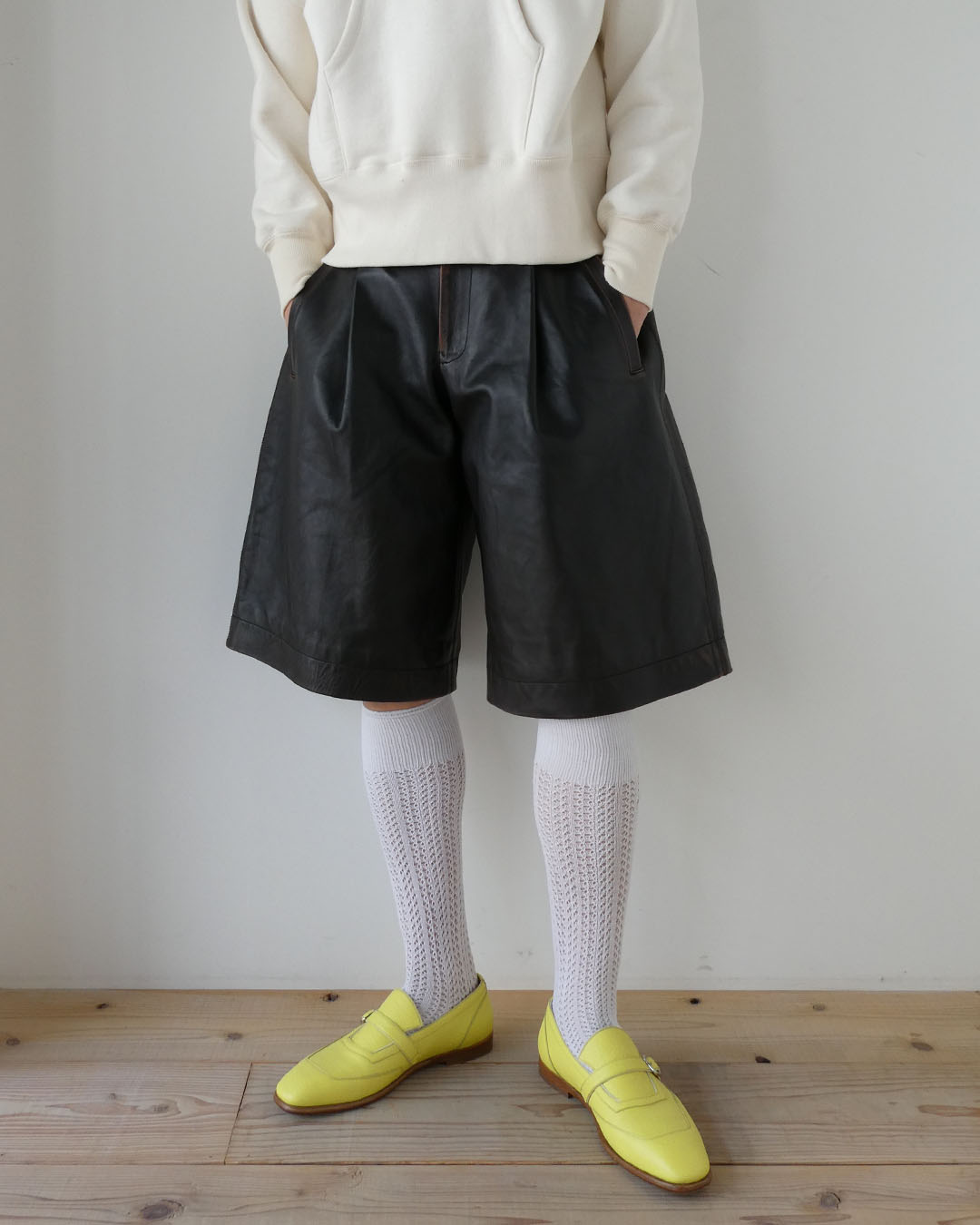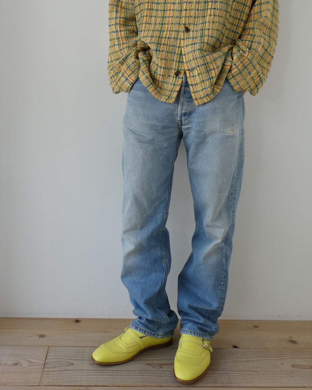 薄いソールのペタッとした佇まいに、小ぶりなバックル、そしてスクエアトゥ。レトロな雰囲気がありながら、90年代,00年代のプラダようなモードでファッション的、クールなイメージも感じて個人的にはかなり刺さっています。