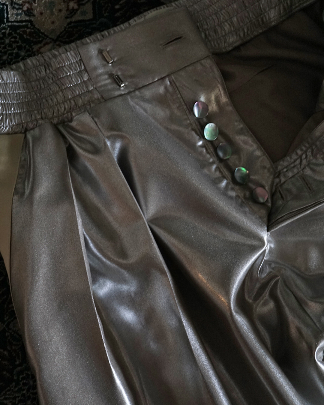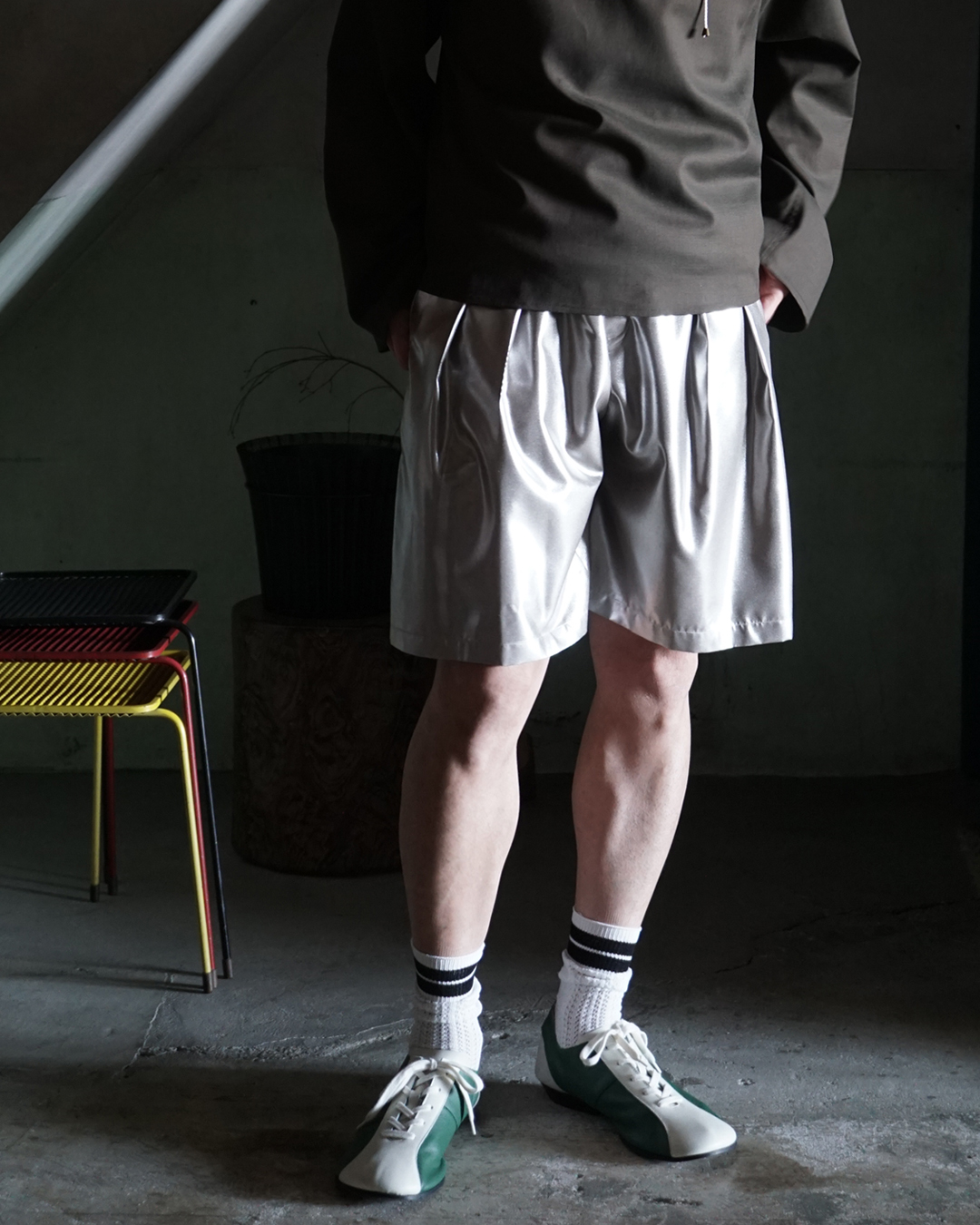 2インプリーツ、ボタンフライといったクラシックなディテール、ラミネート加工が施されたシルク100%のファブリック、極めてラグジュアリーなボクシングショーツです。